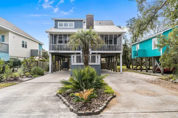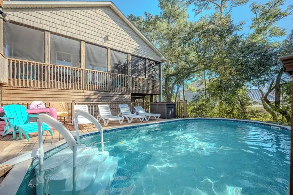 Oak Island 2nd Row Large Beach Home with Private Gated Pool! 5 Bedrooms, 3 decks