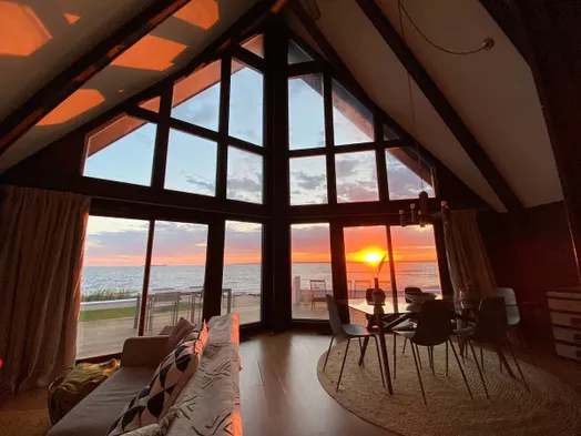 A-Frame cabin with private beach & epic sunsets