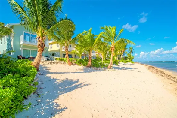 Beachfront aparthotel with outdoor pool, on-site dining, and complimentary shuttle service in West Bay.