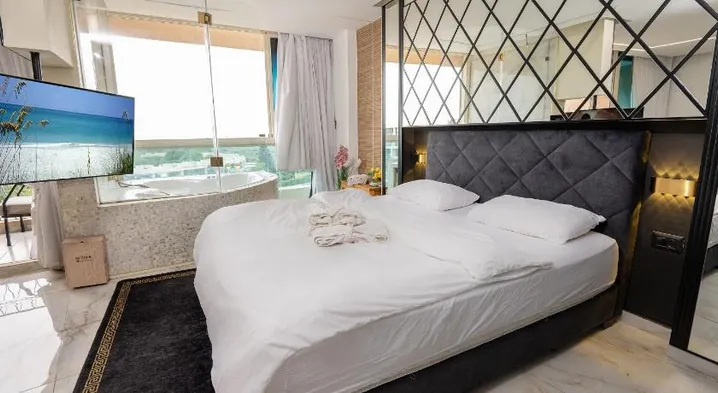 Luxurious aparthotel with swimming pool, sauna, and on-site BBQ facilities in Caesarea.
