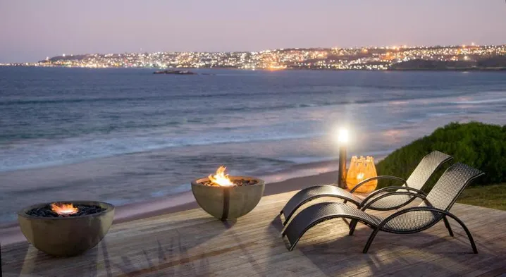 Luxury lodge in Mossel Bay with swimming pool, restaurant, and outdoor fireplace for a romantic countryside getaway.