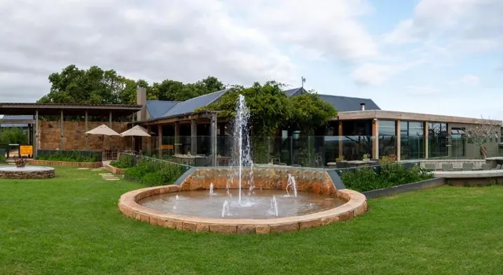 Luxury lodge in Mossel Bay with swimming pool, restaurant, and outdoor fireplace for a romantic countryside getaway.