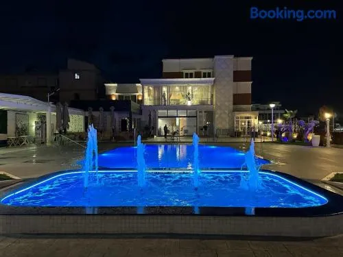 Hotels in Tirana that feature outdoor pools often provide a range of amenities to enhance your stay. These may include lounge chairs and cabanas for comfortable sunbathing, pool bars serving snacks and drinks, and sometimes even jacuzzis or swim-up bars for added luxury. Many properties also offer complimentary towels and poolside service. Further amenities might include wellness facilities, such as spas or fitness centers, where guests can combine relaxation with health. Additionally, some hotels may host events or activities by the pool, creating a vibrant atmosphere for guests looking to socialize or engage in fun activities.