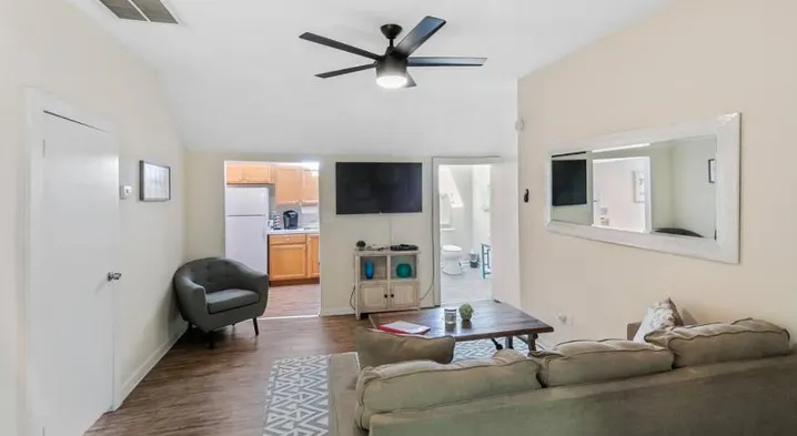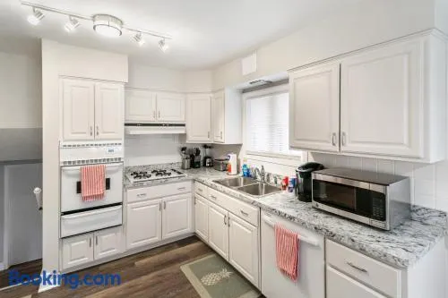 Cozy bungalow with air conditioning, laundry service, and fitness facilities near theme parks in Mundelein.