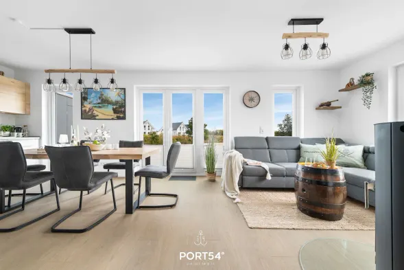 Our high-quality vacation apartment \"Hafenheimat\" welcomes you in a casual Scandinavian style with a direct view of the Schlei, the sailing harbor and the herring fence, as well as the apartment's own terrace, from where you can watch the hustle and bustl