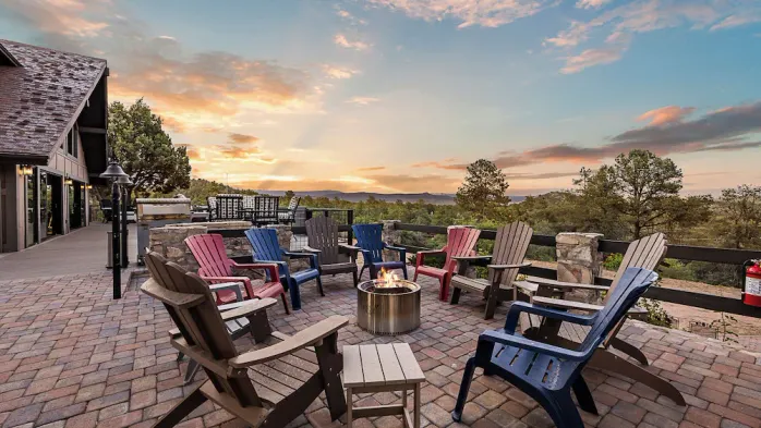 Modern vacation home with gourmet kitchen, outdoor firepit, and stylish décor in scenic Payson.