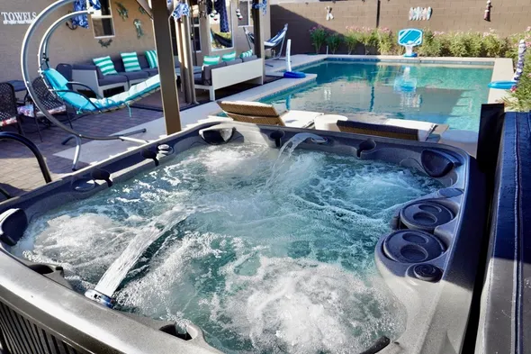 Heated Pool & Spa at Minimal Modern Vegas Home