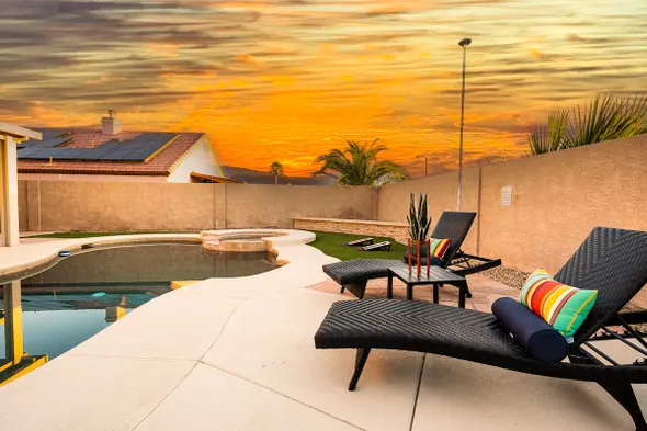 New Pool/Spa & Pool Table @ 6BR Refined Vegas Stay