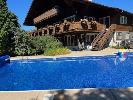 Authentic Swiss Chalet w/ private saltwater pool, sauna, grill, fire pit & more