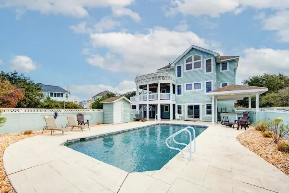 3rd row Whalehead house w/ private pool, hot tub, elevator, pool table, pet friendly