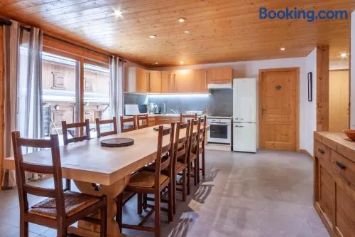Spacious apartment with garden, fully-equipped kitchen, and close proximity to Morzine's ski slopes and biking trails.