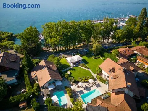 Luxury hotel on Lake Annecy with indoor pool, full-service spa, and two restaurants for a relaxing getaway.