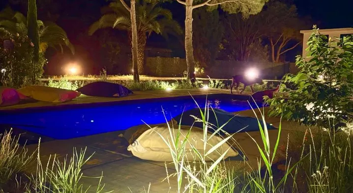 5 personnes piscine pinède et mer
