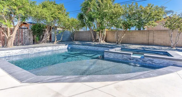 Designer-decorated home with swimming pool, jacuzzi, and game room, perfect for families near Disneyland.