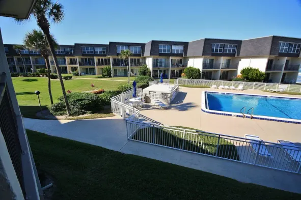 Apartment with outdoor heated pool, terrace, and free Wi-Fi, just steps from New Smyrna Beach.