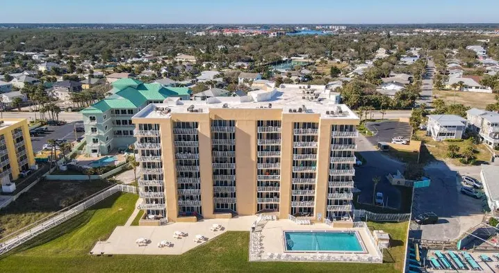 Beach hotel with outdoor pool and kitchens, steps from New Smyrna Beach.