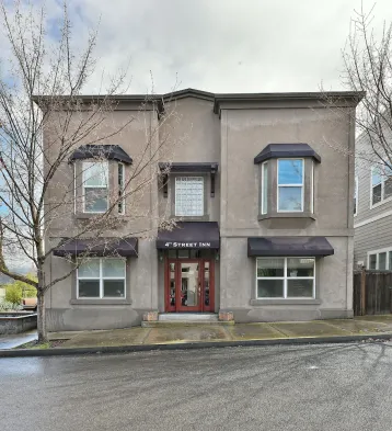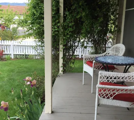 Charming 1 BR Orliena Suite in historic downtown Ashland, OR. Walk to the Oregon Shakespeare Festival, shops, and dining. Features a kitchenette, plush queen bed, and shared hot tub access. Dog friendly!