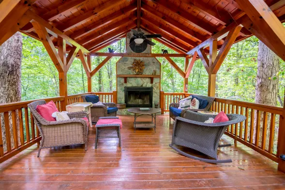 The Blissful Bear Cabin \nCreekside treehouse w/fireplace\nSTR Host Lic #: 002252