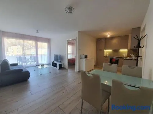 Modern apartment in Sion with free parking, express check-in/check-out, and nearby golf and hiking activities.