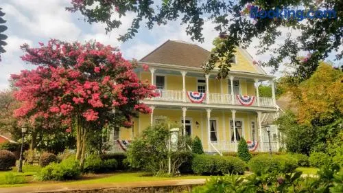 Charming guest house in Natchitoches with private balconies and a cozy fireplace in the lobby.