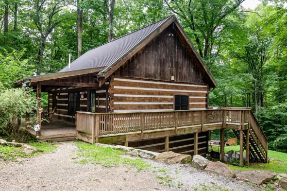 Cozy log cabin in Nashville with hot tub, billiards, and outdoor grill for a relaxing getaway.