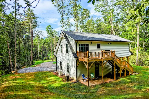 Cozy cabin in the mountains with a jetted tub, air conditioning, and access to hiking and kayaking adventures.