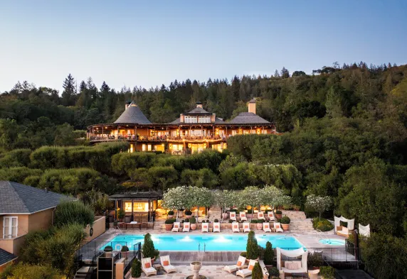 Luxury hotel with spa, outdoor heated pool, and private hot tubs in Yountville's scenic mountains.
