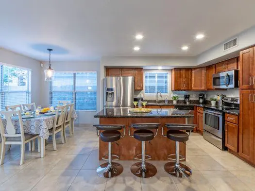 Experience modern desert vibes in Gilbert with a stylish vacation home featuring a fully equipped kitchen and high-speed Wi-Fi.