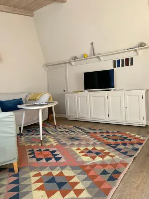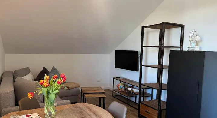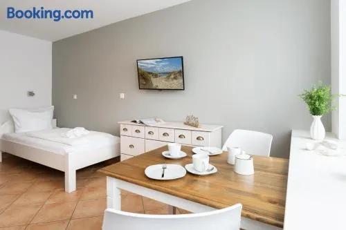 Modern apartment with heated floors, a sauna, and a fitness center, just a short walk from Westerland Beach.