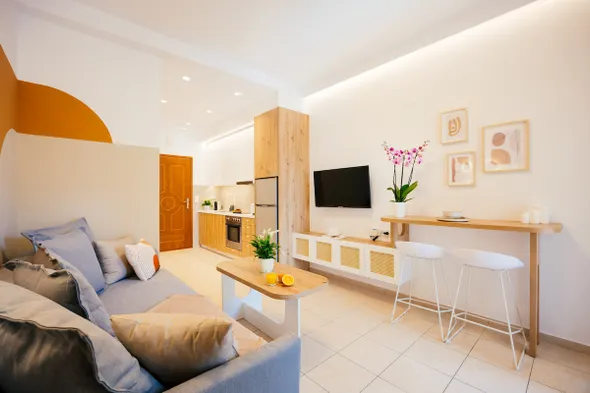 Hotels featuring kitchens in Rethymno often provide a variety of amenities designed for a comfortable and convenient stay. Common amenities include a full-sized refrigerator, a stovetop or induction cooktop, microwave, and essential kitchenware such as pots, pans, utensils, and dishware. Additionally, some hotels may offer a dishwasher for easy cleanup, along with coffee makers and toasters. This setup allows guests to prepare meals at their convenience, which is especially beneficial for families or those with dietary restrictions.