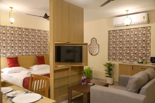 Yes, several hotels in Hyderabad are equipped with smart TVs. These televisions provide guests with the ability to stream their favorite shows and movies directly from popular platforms like Netflix, YouTube, and more, using their own accounts. This feature is particularly attractive for travelers who prefer to unwind with familiar entertainment options after a long day. It's advisable to check with the hotel directly to confirm the availability of smart TVs as part of the room amenities.