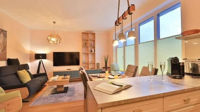 Modernes, strandnahes Apartment für zwei mit sonnigem Balkon und Blick ins Grüne