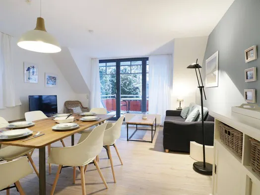 Modernes, strandnahes Apartment für zwei mit sonnigem Balkon und Blick ins Grüne