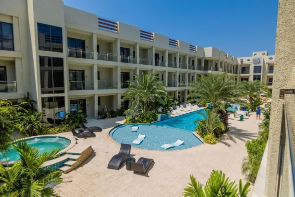 Spacious 2 bedroom condo with 4 freshwater pools, golf course, and jetted tub near Eagle Beach in Aruba.