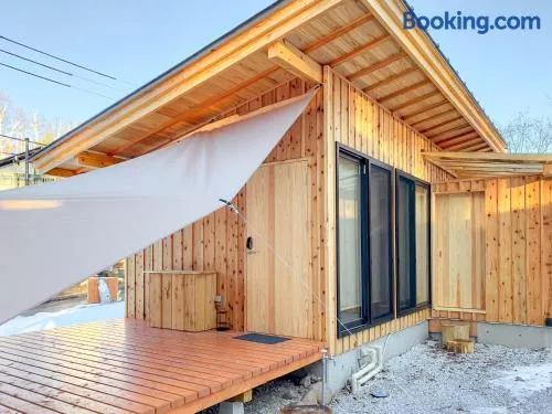 Luxury hotel with ski-in/ski-out access, hot tub, and free area shuttle in Hakuba's stunning mountains.
