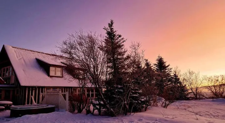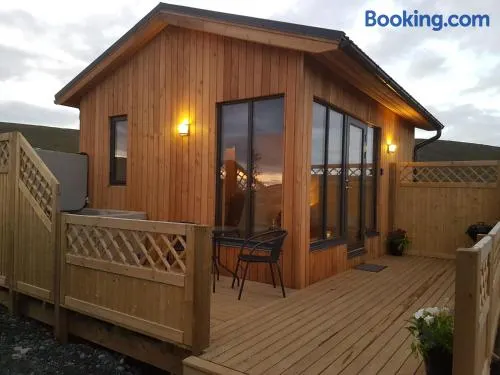 Relax in a resort with heated floors, a hot tub, and a beautiful garden in Borgarnes, Iceland.