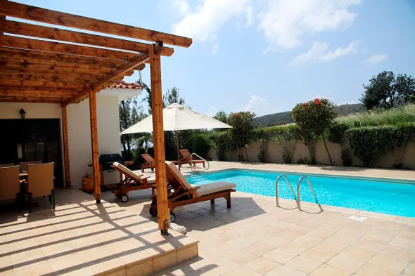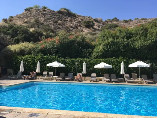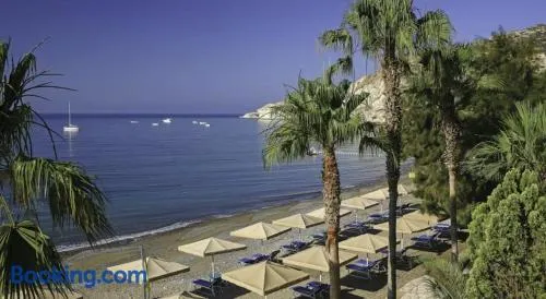 Luxury beach resort with two outdoor pools, a full-service spa, and gourmet dining options in Pissouri Bay.