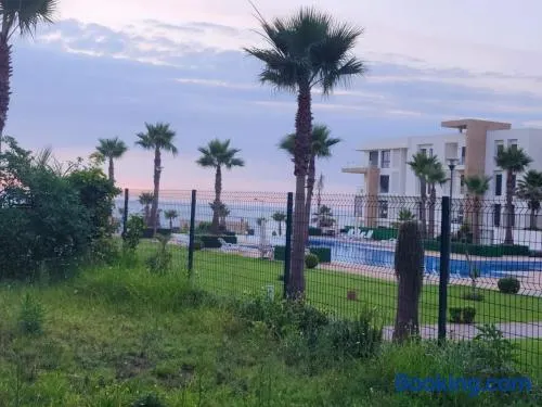 Luxury hotel with outdoor pool, spa services, and Mediterranean dining in Salé, Morocco.