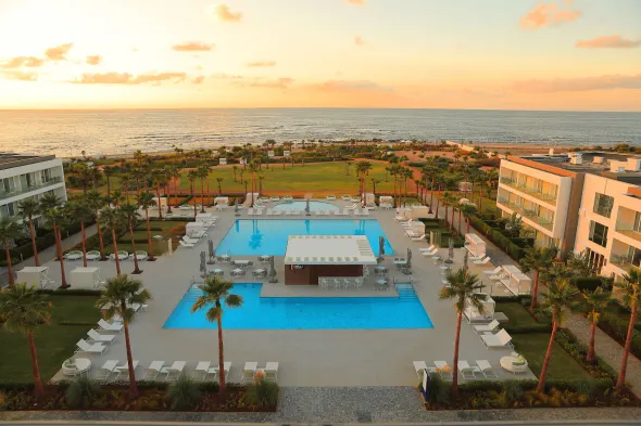 Luxury hotel with a full-service spa, 2 indoor and 2 outdoor swimming pools, and 5 on-site restaurants.