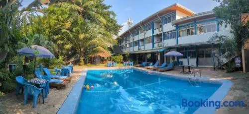 Comfortable hotel near Douala Grand Mall with a terrace, garden, and complimentary airport shuttle service.