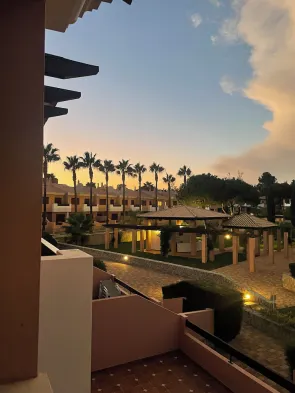 Luxury aparthotel with 5 outdoor swimming pools, spa services, and multiple dining options in Quarteira.