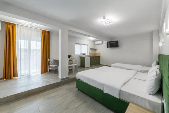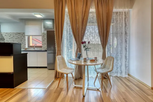 Hotels with kitchens in Otopeni typically provide a variety of amenities designed to enhance your stay. Most kitchens will come equipped with essential cooking appliances such as a refrigerator, stove or cooktop, microwave, and sometimes even an oven. Additionally, you'll find cookware including pots, pans, and utensils necessary for meal preparation. Dishware such as plates, bowls, and cutlery are often included as well, allowing you to enjoy home-cooked meals in the comfort of your hotel room.