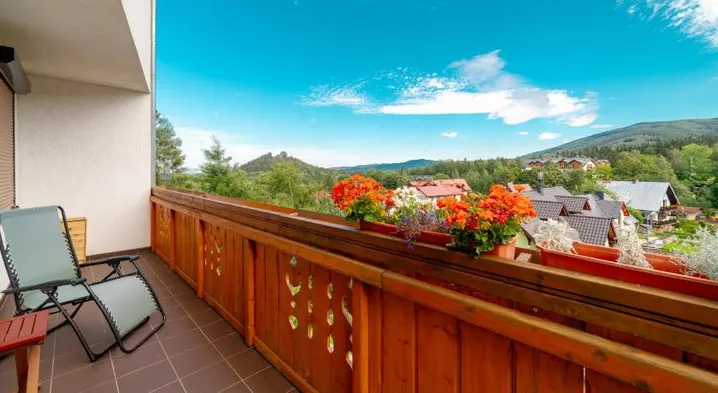 Relaxing guest house with spa facilities, beautiful mountain views, and a cozy fireplace room in Karpacz.