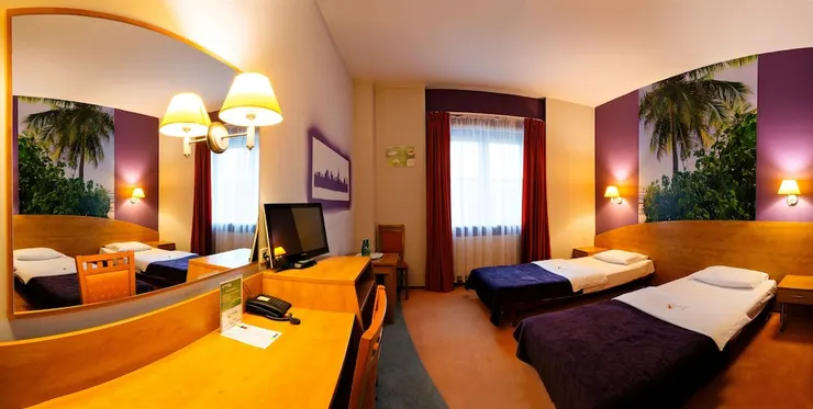Hotel with a waterslide, sauna, and Mediterranean dining near the airport in Pruszkow.