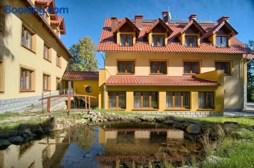 Experience a relaxing stay with a swimming pool, sauna, and on-site dining at this resort in Szklarska Poreba.