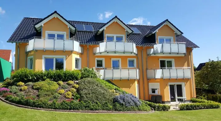 Family-friendly hotel with indoor and outdoor pools, spa services, and a restaurant on the riverwalk in Groemitz.