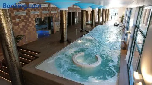 Experience luxury with a full-service spa, indoor hot tubs, and an outdoor swimming pool at this family-friendly hotel.