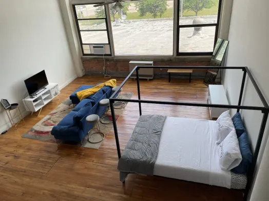 Authentic industrial loft in Detroit with air conditioning, laundry service, and a private River Walk nearby.