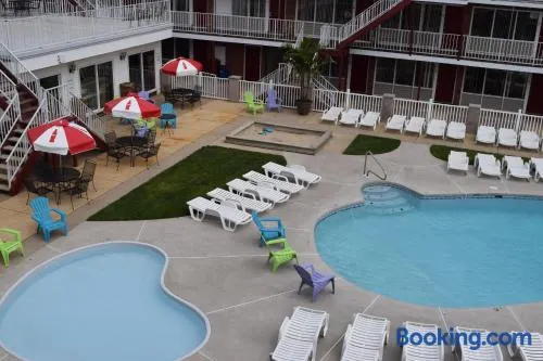 Enjoy a seasonal outdoor pool and convenient access to Seaside Heights Boardwalk just a short walk away.