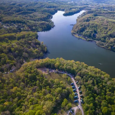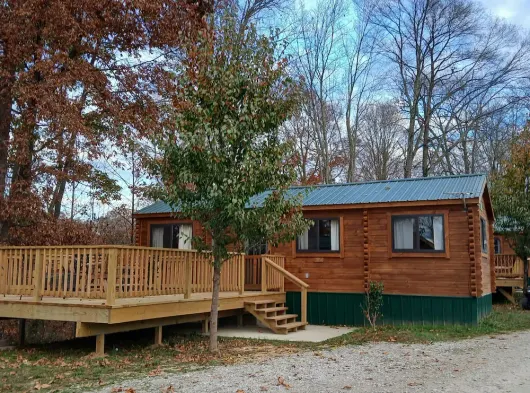 Enjoy a cozy log cabin experience with a full kitchen, outdoor patio, and access to fishing and kayaking in Hocking Hills.